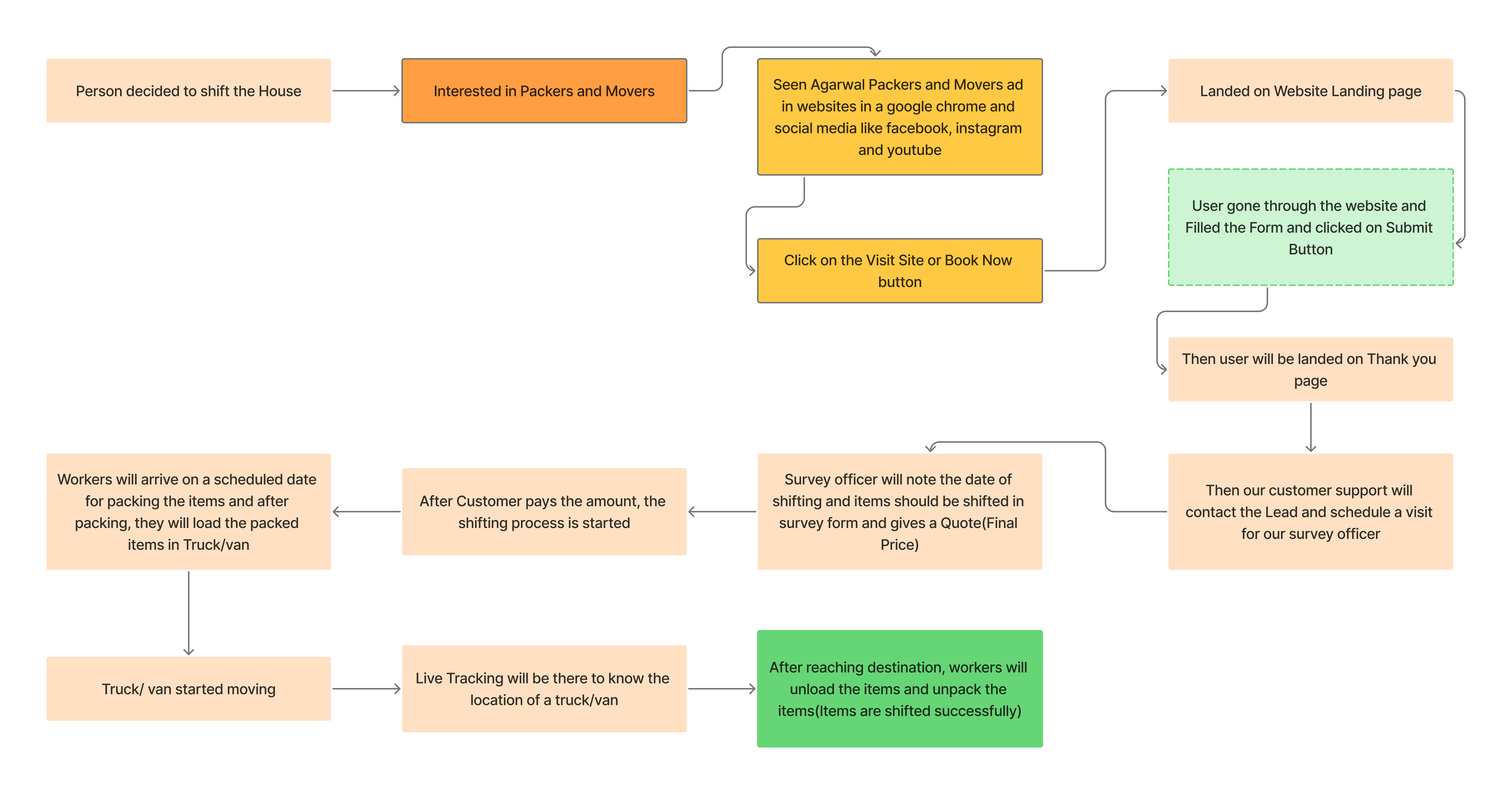Flow from a user decided to shift the house to successfully shifted by a packers and movers.